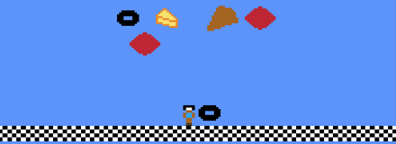 You should see food raining down on Bob. In our next tutorials, we'll have Bob catch the food and work on completing an order.